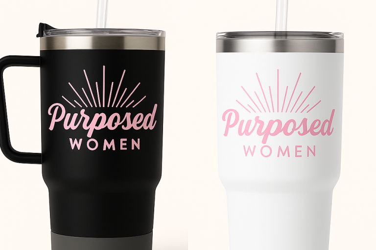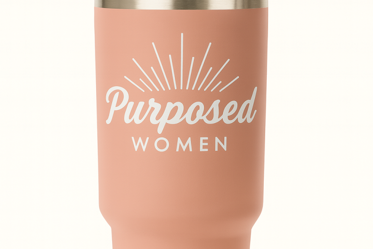 Stay hydrated and inspired with the Purposed Women 40 oz tumbler — the perfect blend of style, purpose, and faith. Featuring a blush-pink matte finish and the signature Purposed Women logo in white, this tumbler reminds you to live intentionally and shine God’s light wherever you go.