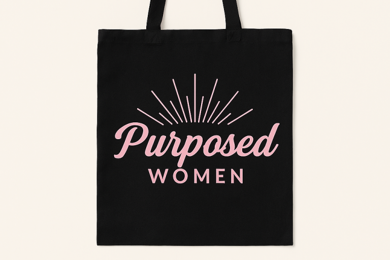 Carry purpose wherever you go. This sleek black tote features the signature Purposed Women design in soft pink, symbolizing light, faith, and strength. Perfect for conferences, church events, daily errands, or gifting to a sister in Christ.